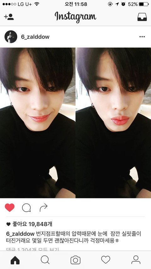 충혈된 눈 가리려고 앞머리 길게 내린건가 진짜 잘생겼다