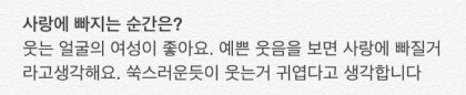 사실 사진은 다 엔드라이브에 있어서 찾기귀찮았지만 인터뷰 할때마다 바뀜ㅋㅋ 쭈네도 저번에 귀여움사람이좋다며..^^ 인터뷰를 거듭할수록 희망을 잃어가는느낌~♥