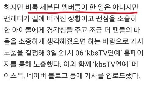 + 오늘 오전에 톡선에 올라온 핸드폰으로 촬영한 사람들은 저희 팬덤 측에서도 처음 알았던 것일뿐더러, '핸드폰으로 촬영했다'라는 이유로만 세븐틴 팬이라는 것을 단정 짓기 힘들다고 생각했습니다. 팬이 아닌 사람들도 핸드폰으로 촬영하는 경우가 있으니까요.