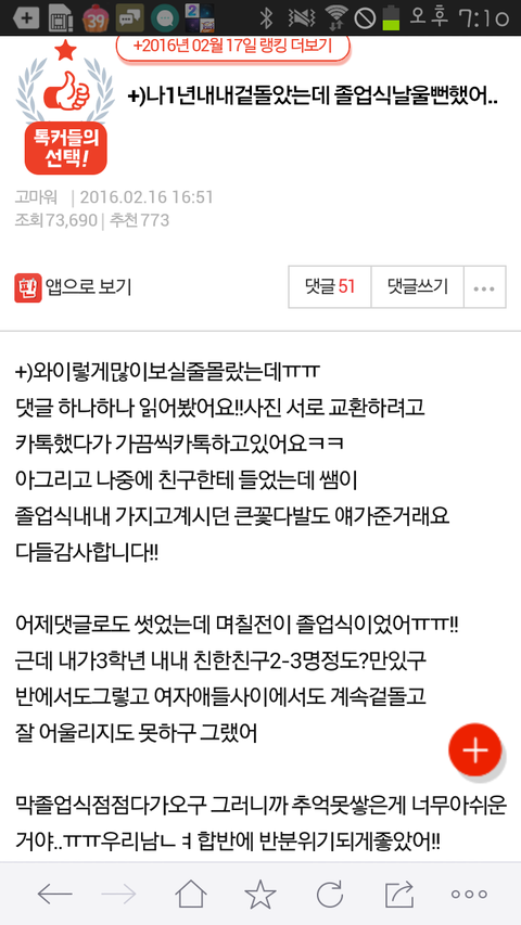 1년내내 겉돌다가 졸업식날 속상해서 집가려다가