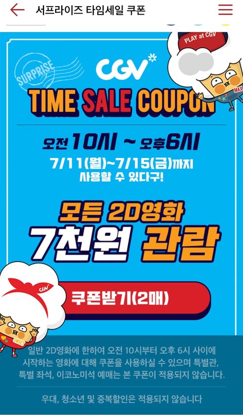 CGV타임세일쿠폰!!