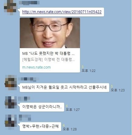 단톡방에서 정치얘기나오면 늘 지탄과 공격을 받음에도 꿋꿋히 MB 변호사를 자처하는