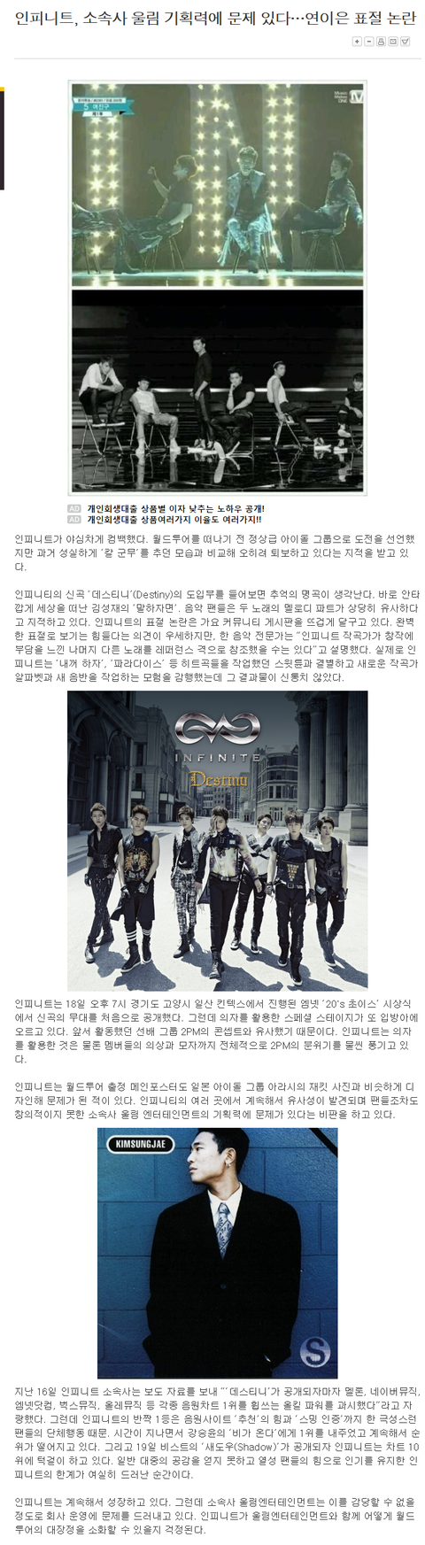 인피니트, 소속사 울림 기획력에 문제 있다…연이은 표절 논란