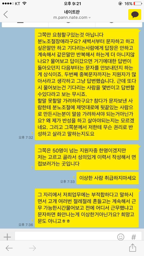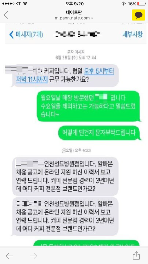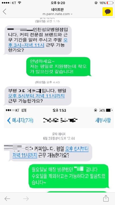 근데 그 다음날(화) 문자가 왔고 씹었습니다... 사람이 워낙많다니 실수로 보낸거겠지하구요