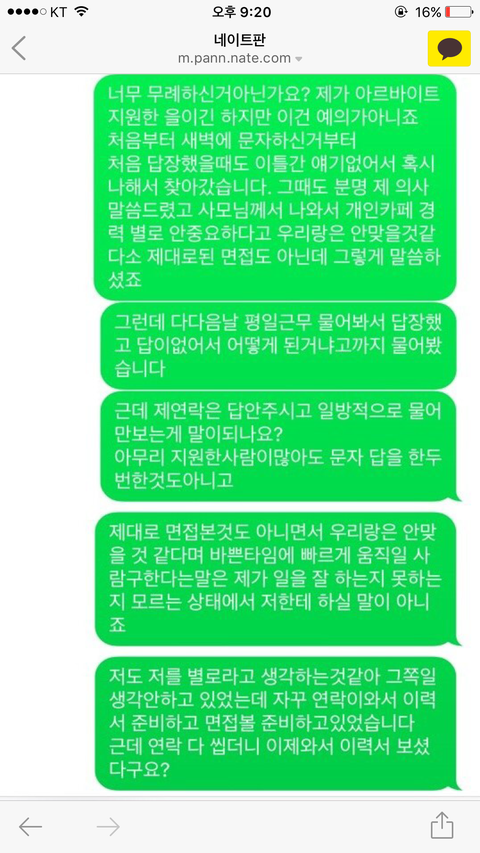 알바몬에 사진첩올라왔는데 여기 문자보고 기분나빠서 면접안간 사람도있음........ 어딘지알려주고싶지만..... 알아서 찾아보세용