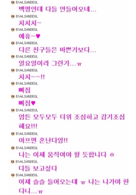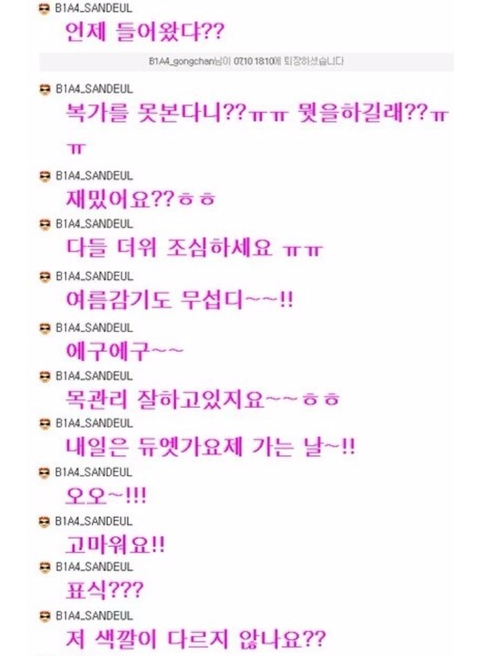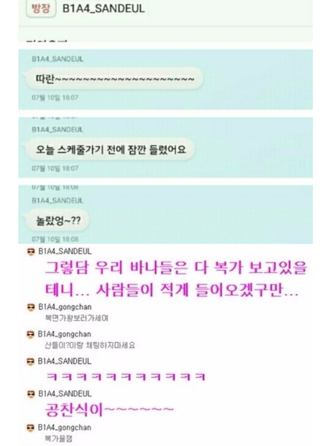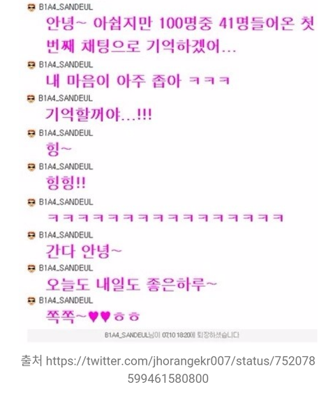 어제 산들이 공카 채팅 캡쳐본