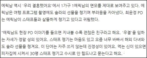 에릭남땜에 우결 챙겨보는데 여기서 발린 사람은 없나,,,,막 솔라가 자기 머리 아톰으로 만들어놓고 연예인인데 그래도 완전 생얼 카메라에 나오면 신경쓰일텐데도 에릭남은 자존감 높아서 그런지 신경을 아예 안쓰고 오로지 촬영에 집중하더라,,, 근데 피부도 개좋고 무슨 갓태어난 애긴줄,,,ㅋㅋㅋㅋ