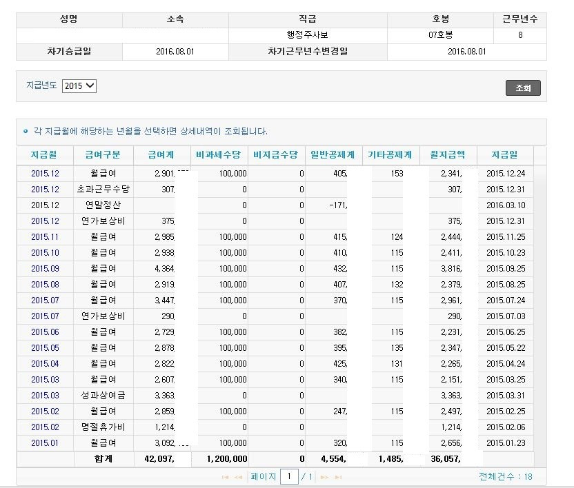 공무원 8년차 연봉