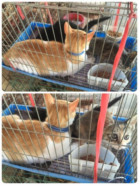 6월 말 구조자님이 경기도 가는길에 트럭에 닭과 병아리 수십마리와 함께 철장에 갇혀 판매되고 있던 엄마냥이와 아기2마리를 발견했어요 보는 순간 참....ㅠㅠ 냄새나고 더러운 저곳에 셋이 갇혀있는걸보니 차마 지나칠수가 없었어요 엄마냥이는 다리도 뻗지 못할 정도의 공간에서도 겁먹은 아기들을 살뜰히 챙기고 있었어요 더운 날인데 물도 없이 저 좁은 곳에서 얼마나 오랜기간을 트럭에 실려다녔을지 생각하니 눈물이 흘렀어요ㅠㅠ 어디로 누구에게 팔려갈지 모르는 생명들이었기에 저 닭장수 트럭에서 빨리 꺼내와야 한단 생각으로 엄마와 아기들을 데리고 왔어요데리고 온후 바로 병원에 데려가서 검진했는데 다행히 셋다 건강상태는 양호했어요 *세마리 모두 건강검진완료*