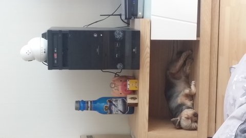 지붕있는집이좋다해서 사줬는데 지금은장난감집이되어버렸어요 ...요즘은날이너무더워자는시간이좀많은데 저기들어가서자고있네요ㅋㅋ