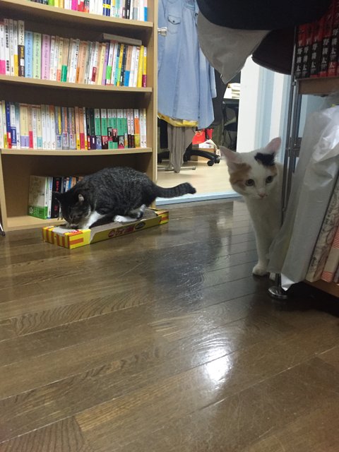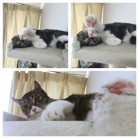 여튼 군기반장 퐁타가 조용해지자 나나코는 캣타워 꼭대기층을 차지했고요.