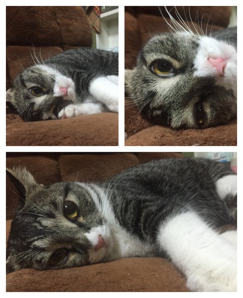 남집사 의자에 누워 의자에 앉으려는 남집사를 째려봤고요.