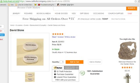 이게 뭔지 몰라서 구글에 검색해봤더니 다윗의 지혜의 돌이라고 함 ㅋㅋㅋㅋㅋㅋㅋㅋㅋㅋㅋㅋㅋㅋㅋㅋㅋ원래 월마트에 팔던 돌인데 지금은 안팔아서 카톨릭 선물 사이트에 올라온거 퍼옴.