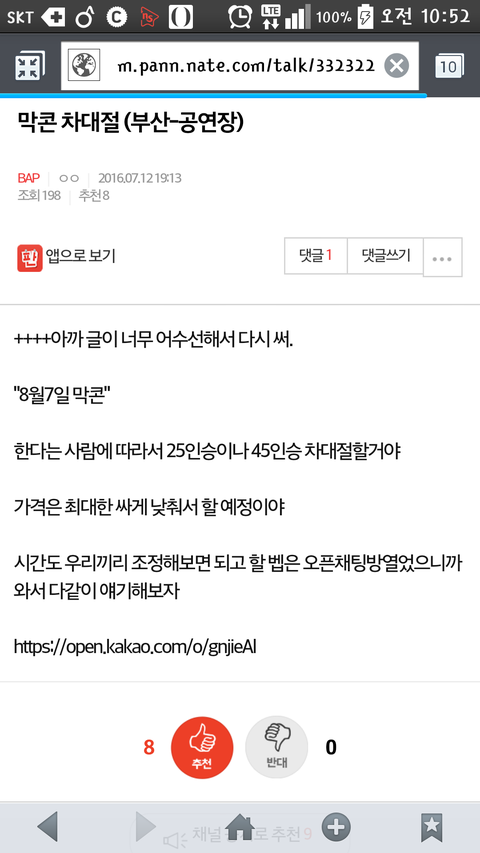 난 서울 살아서 괜찮은데 걱정되서... 이것도 채널공지 뜨게 해봐라..공카에도 올렸다던데 빨리 인원 채워졌으면....