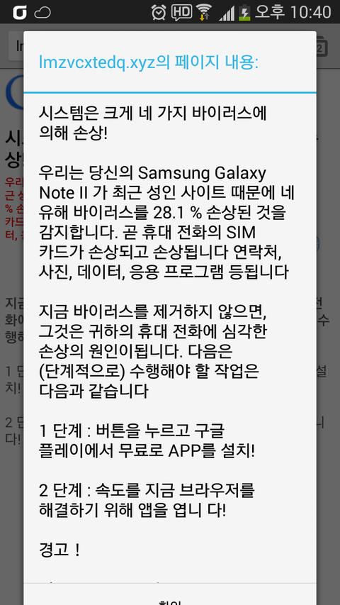 페이스북에서 짤을 보고 있는데 이런 화면이 뜨면서 바이러스 경고를 하네요. 일단 저는 쌩까고 무시했는데요. 혹시나해서 V3로 정밀검사를 해봤는데 감염된 바이러스가 없다고 나옵니다. 이런 경고화면 보신적 있나요?