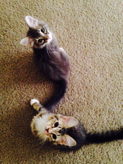 2주전 유기묘 분양소에서 데려온 smoky와 hottie에요.