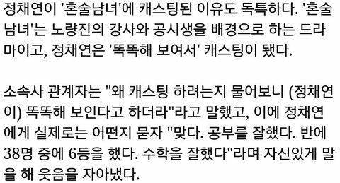나 서공예 재학생인데 학교 시험 쉬움 근데 과마다 다르고 과목마다 다름 음악과나 무용과는 연예인 쪽 하는애들도 있고 그냥 프로듀싱이나 싱어송 아니면 크루 들어가서 춤추고 이런애들이 많아서ㅜ별로 공부 안해도 전공 살릴 수 있으니 잘 안 함 근데 연기과 미술과 연예과는 대학에서 성적 많이봐서 대체로 반에 공부 하는애들이 많음 대부분이ㅜ열심히함 과목도 어느대학 무슨과 마다 보는 과목이 달라서 다 다른데 정채연은 방연과였음 공부하는애들 많은 반임 반에서 6등이면 나쁘지않은 수준임