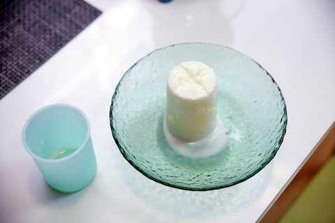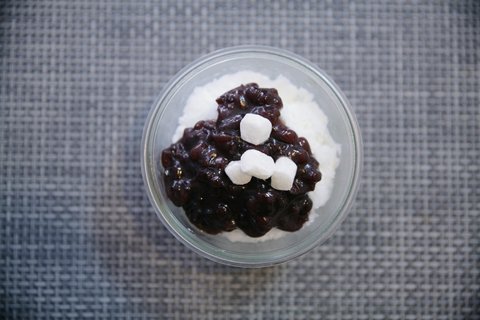 우유 설탕 조금 넣고 얼려서 팥만 올려서 만들어봤습니다.