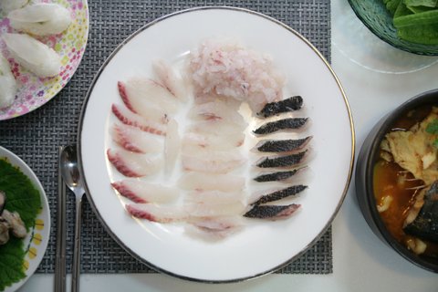 며칠전에 잡은 40센티 조금 안되는 벵에돔 처음 회떠봤습니다.