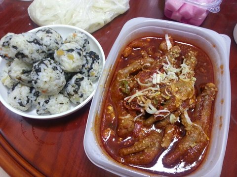 맛있다는곳에서 뼈닭발이랑 옛날 통닭 포장해와서
