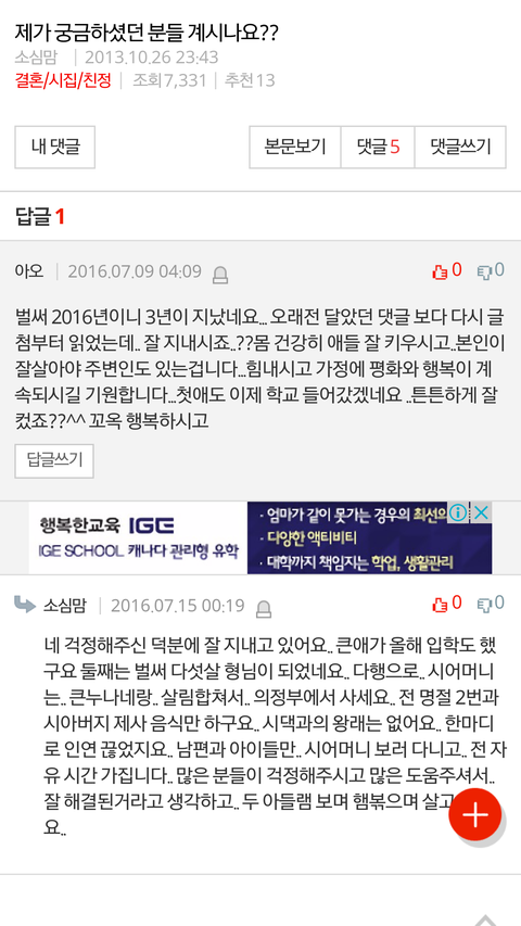 오늘 우연히 제가 예전에 썼던 글에 댓글다신분에게 댓글 달면서 마지막 후기를 올려요