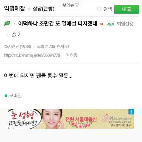 저게 팬싸한 날이라고 병신아ㅋㅋㅋㅋ한강같은 소리하고 있네 저 지식인봤는데 딱봐도 루머퍼트릴라고 쓴 티가 나더구만ㅋㅋ 팬질 원데이투데이하냐