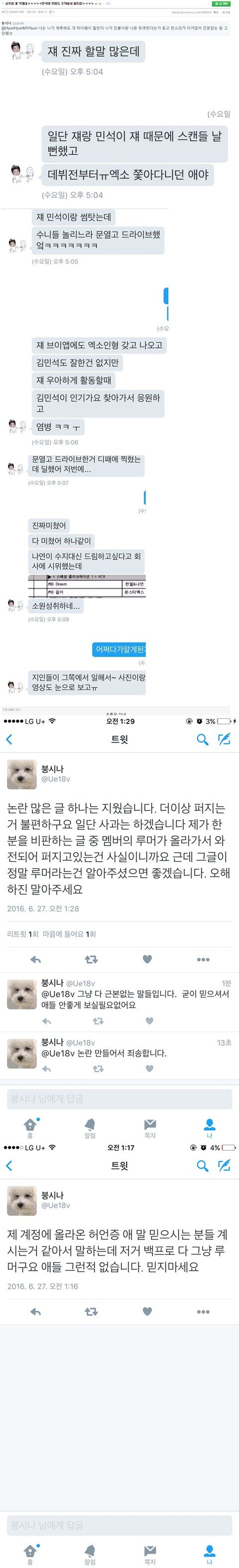 아니씨ㅣ발 시우민팬들아 디엠 캡쳐본이라도 내놔 증거도 없으면서