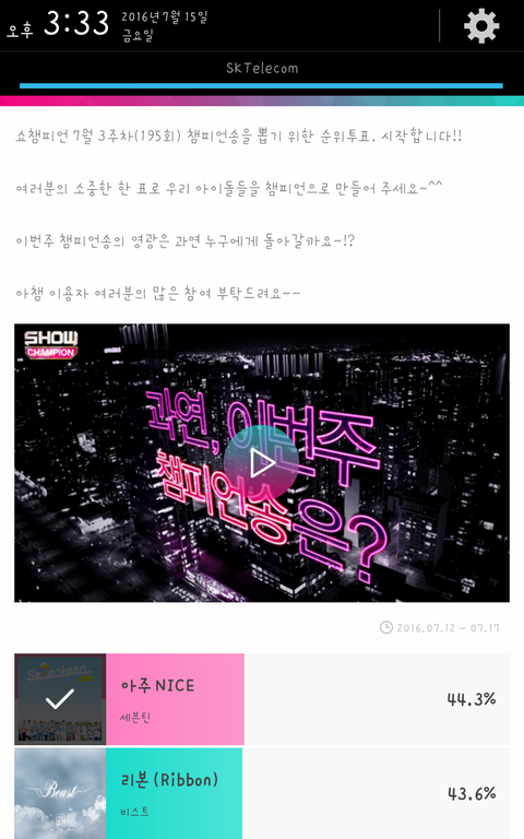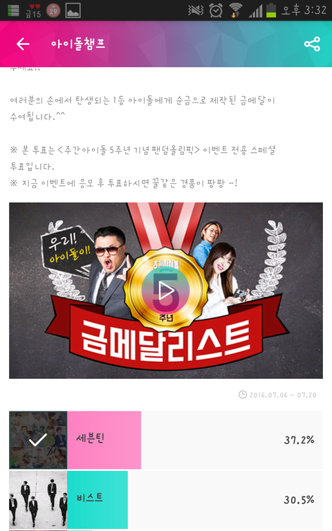 3.갓챔투표! 이거 2위분이랑 차이얼마안나서 불안해ㅠㅠ