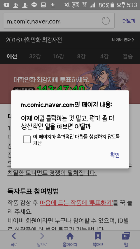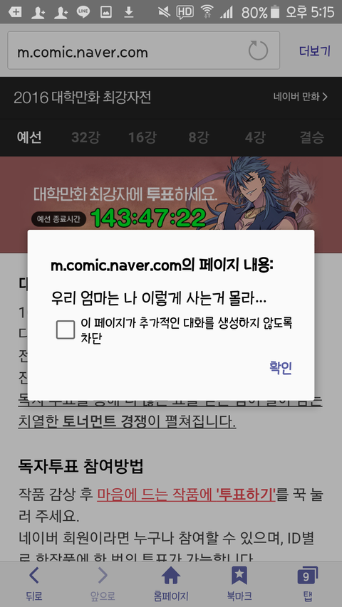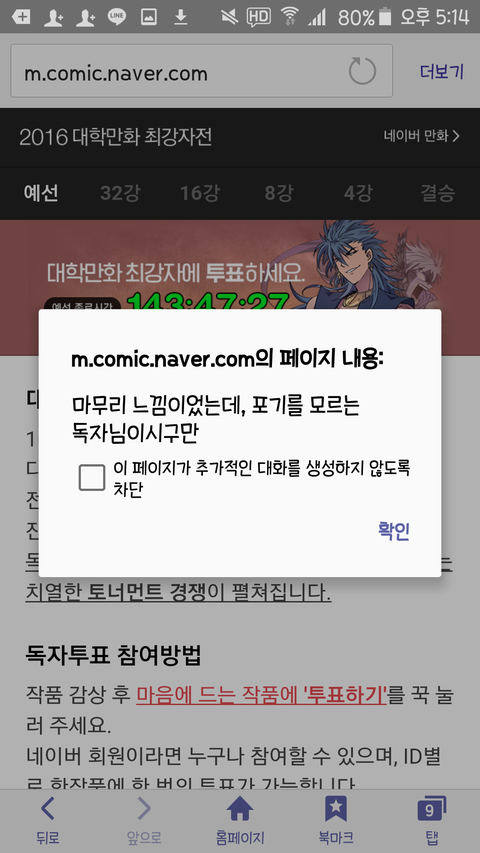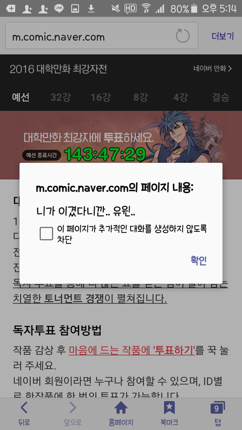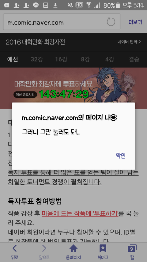 아닠ㅋㅋㅋㅋ대학만화최강자전있잖아 걍들어가봤는데