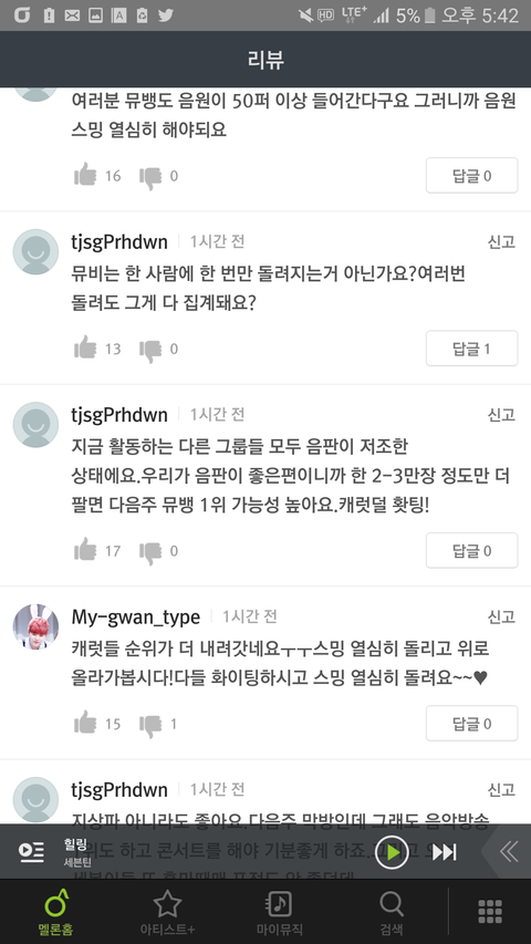아직 앨범안산캐럿들은 사줬으면 좋겠다ㅠㅠ 2-3만장만 더팔면 1위니까ㅠㅠ 나도 한장 더사려구.. 그리고 여건이 안되는 캐럿들은 음원 50이니까 스밍하고 벨소리 컬러링필수에 다운까지 하면 1위 가능성이 더 높아지겠지!! 화이팅♡♡♡세븐틴 1위 시키고 즐거운 마음으로 아시아 투어가게하자!!