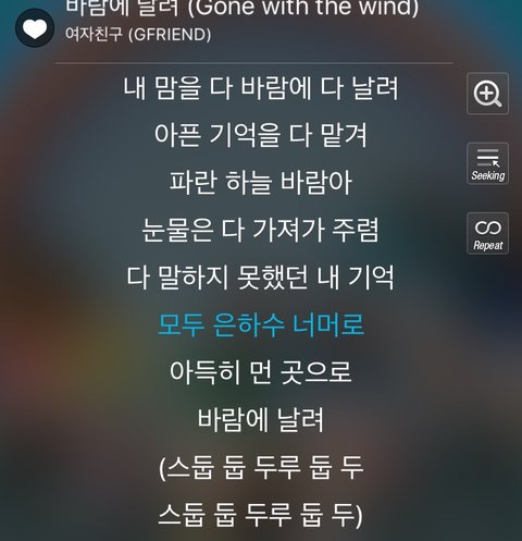음방 보다가 여자친구 수록곡중에 바람에 날려 라는 곡이 나와서 가사를 봤는데
