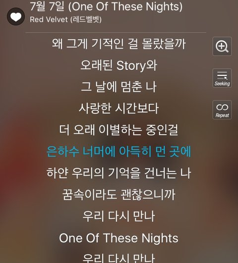 레드벨벳 7월7일에 나오는 가사중