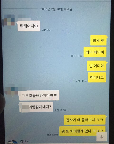 몇일 전에 한국을 방문해서 남자친구를 만났고 카톡을 보게 되었는데 이런 내용이 있어서요