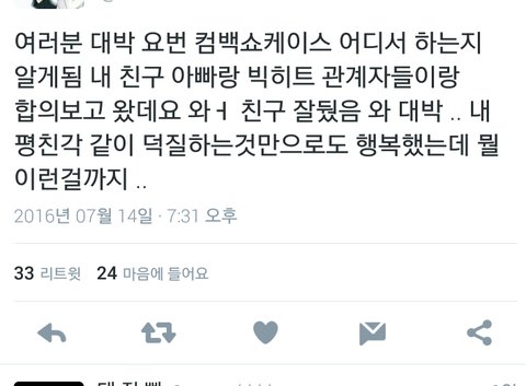 짹에서 본거라 확실하지는 않지만... 관계자랑 빅힛이랑 합의보고 정하고 있대.... 안믿으면 말구... 혹시해서 올려!