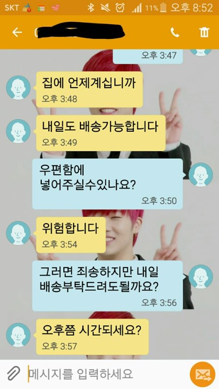 막 등기인줄알고 허둥지둥대면서 전화할까하다가 문자했단말이얔ㅋㅋ그래서 집에 언제오냐고그래서 또 이시간쯤에 마치니까 우편함에 넣어줄수있냐고했더니 위험합니다 라고 완전 단호하게 오는겈ㅋㅋㅋㅋㅋㅋㅋㅋㅋㅋㅋㅋㅋㅋㅋㅋㅋㅋㅋㅋㅋㅋㅋ근데 딱 문장보자마자 단호함이느껴져서 그냥 내일배송해달라고함 ㅣㅋㅋㅋㅋㅋㅋㅋㅋㅋㅋ그래도 우편함에 안보이게넣어주세요!라고 말하기가그래섴ㅋㅋㅋㅋ넘나 단호한말투에 쭈구리됨..☆