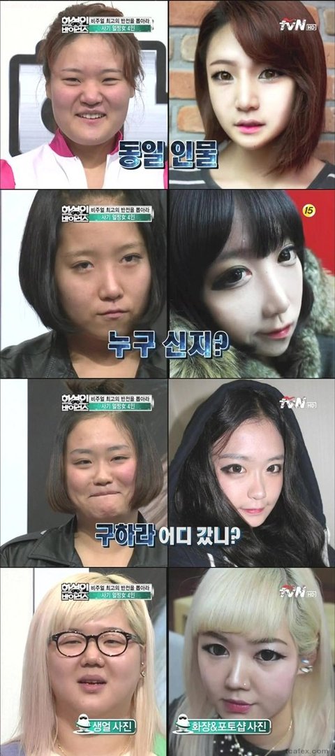 한국여자들은 전세계적으로 알려졌다시피 성형정말 많이하고 화장술도 정말 기가막히지.... 남자들이 예쁘다 예쁘다 해주니까 성형한얼굴 화장으로 변장한 얼굴이 자신의 본판이라 착각하게 되면서 심지어는 남자얼굴을 못생겼다고 주장하기에 이르렀지