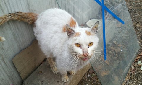 2016년7월15일 희망이가 별나라로 떠났습니다.작년딱이맘때 제가사는아파트단지 구석에서 새끼냥들 밥주고있는데 갑자기어디선가 나타난 지져분한 길냥이였지요.
