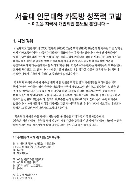 고려대 단톡방 사건에 이어 서울대 단톡방 사건까지 차례로 터지는걸 보면서 나는 그 본질이 뭘까? 고민했어.