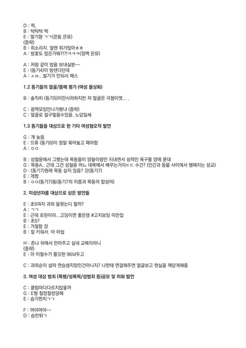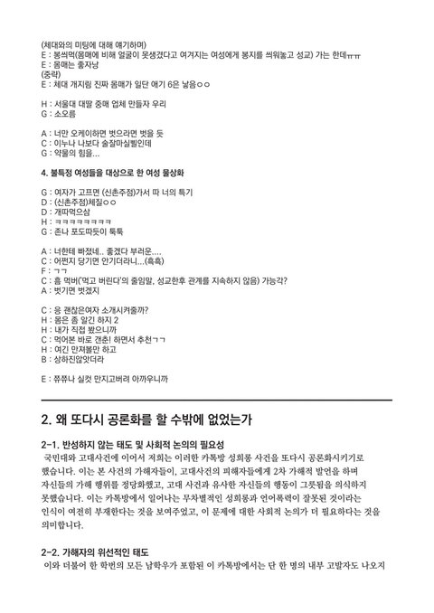 (일반적인 야한 얘기, 동성끼리의 성상담과 서울대 단톡방 음담패설사이의 차이를 굳이 말할 필욘 없겠지?)
