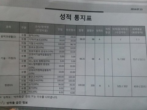 어제 1학기 최종성적표 나왔는데 전과목 다 1등급 나왔다 ㅠㅠㅠㅠㅠㅠㅠㅠ 집이 넉넉한편이 아니라 학원도 못다니고 혼자 공부하면서 진짜 힘들었는데 너무 보람있어 ㅠㅠㅠㅠㅠ 아슬아슬하게 1등급이지만 너무 기쁘다