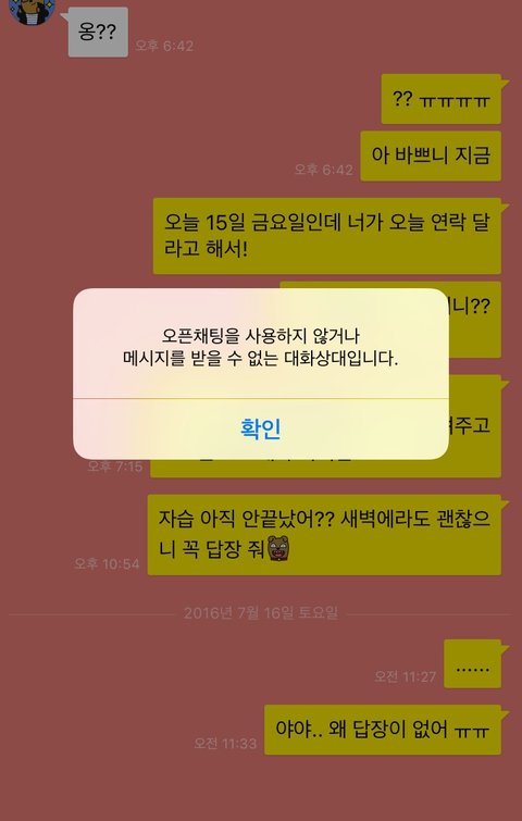 내가 너 기숙사 다닌다고 사정까지 이해해주면서 15일까지 톡도 안보냈어 얼마나 보내고 싶었는지 알아??