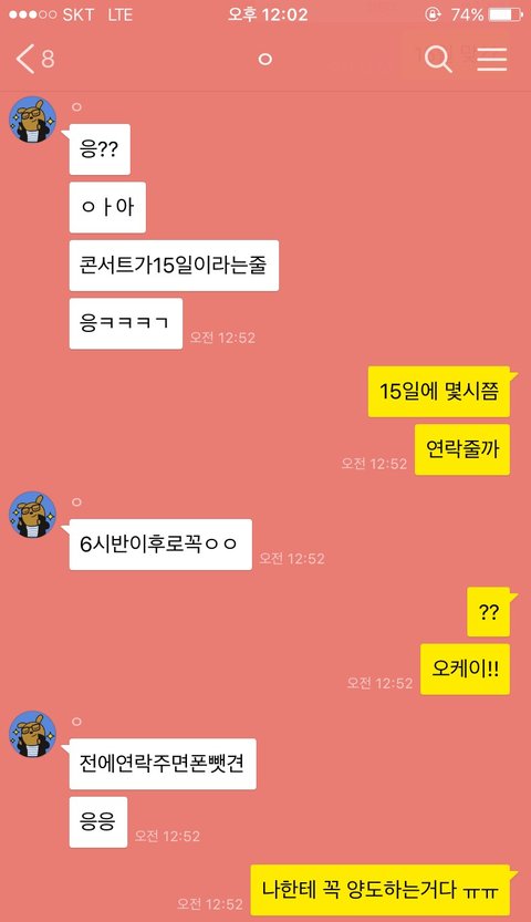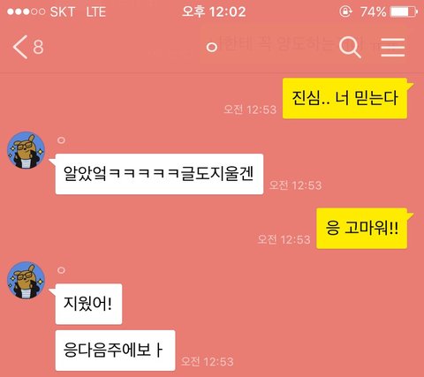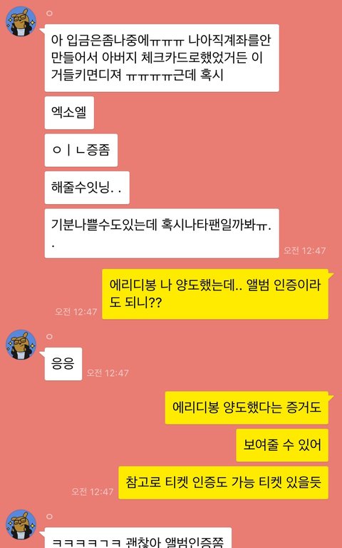 너 친구 좌석 빨리 교환하라고 하던가 ~