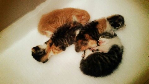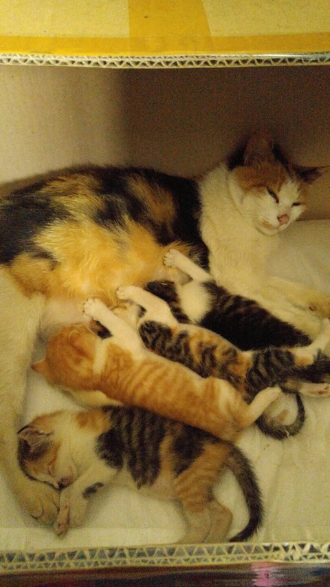 1년전 새끼였던 4마리 고양이들이 성묘가 되어 그중 한마리가 새끼를 4마리를 낳아...