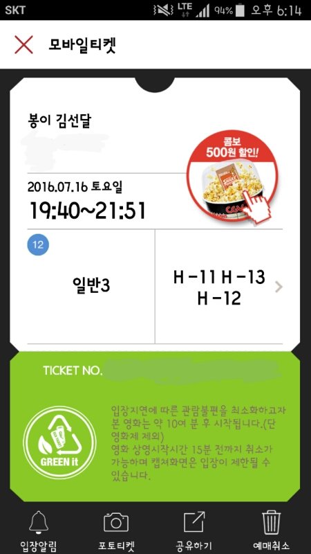 이미 10번넘게 본 웅녀지만... 한번도 안본척을하며 영화관으로 이끌었지 헤헤... 포토티켓도 3장 야무지게 만들었어!! 있다가 뽑고 후기남길게!!!