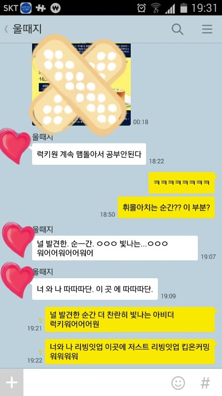 울 남편 시방 학교에서 공부중인데 이리 카톡왔어 내가 차안에서 시디를 좀 틀어댔더니 거의 죽음의 링딩동 수준 ㅋ 이러다 공부 안된다고 원망살까 몰라 ^^;;