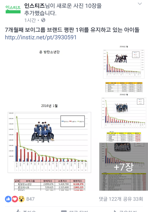 브랜드평판이 뭔 뜻인지 몰라??인기순위나 팬 수 순위매기는게 아니라 여러가지를 종합적으로 평가하는거야 말그대로 브랜드평가지