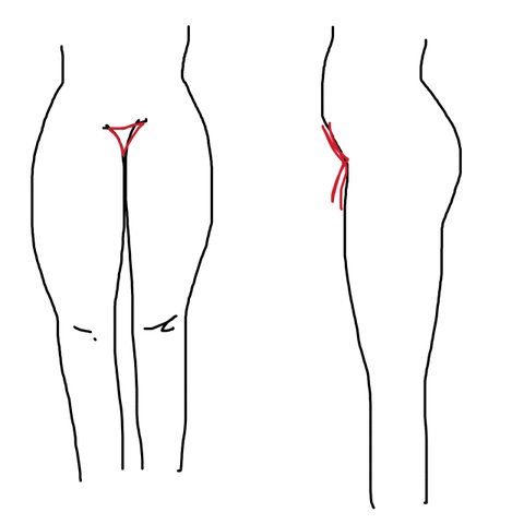 내가 뚱뚱하지도 않고 마르지도 않은 통통한? 체형이라 허벅지가 붙지도 않고 떨어지지도 않고 밑에 사진처럼 애매하게 떨어지다 붙어서 빨간색처럼 삼각형이 생기거든? 그리고 똥배도 좀 있어서 옆에서보면 밑에 그림에 빨간색처럼 저런 굴곡?이 생긴단말야ㅠㅠㅠㅠ