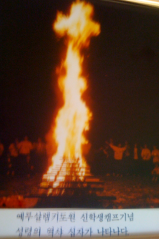 우리 신학교 학생들 여름방학 기간중 영성훈련중 캠프파이어 모닥불에 천사와 십자가 모양이 포착돼 올려 봅니다 은혜 받으시길 예수그리스도 이름으로 빌어 봅니다.
