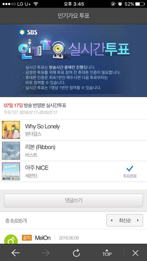 서양수박 실시간투표하고, 응가 #1245로 세븐틴 적어서 문자보내기