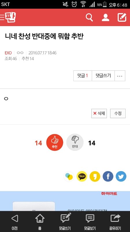 찬성한애들아 들와서추반좀